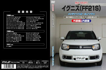 ※製品のデザインにつきましては予告なく変更される場合がありますこのDVDがあれば、自分でドレスアップして工賃節約! そして浮いたお金で更なるドレスアップやチューニングをして改造車にしよう! 自分だけのイグニス FF21S をDIYで創り上げることが出来ます! ドレスアップ&改造をして街や山に出掛けて目立っちゃおう!! 電球交換解説(バルブ・ウィンカーランプなど)バンパー交換方法・ ヘッドライト交換方法・フロンドドア内張り脱着方法などなど、 イグニス FF21S のメンテナンス・各種パーツ交換方法・脱着方法を解説したDVD。